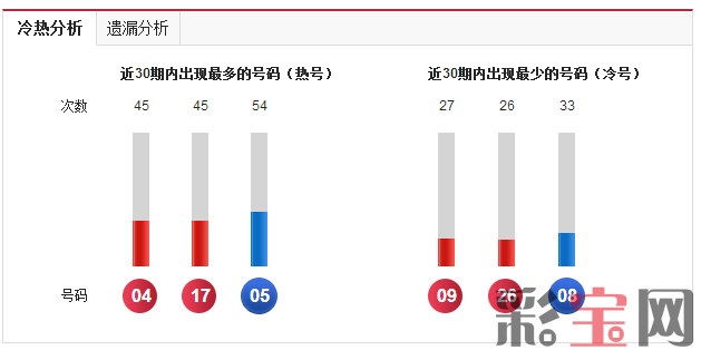 后区02同时近30期开出过8次,是近期热号之一。前区无热号,无冷号。