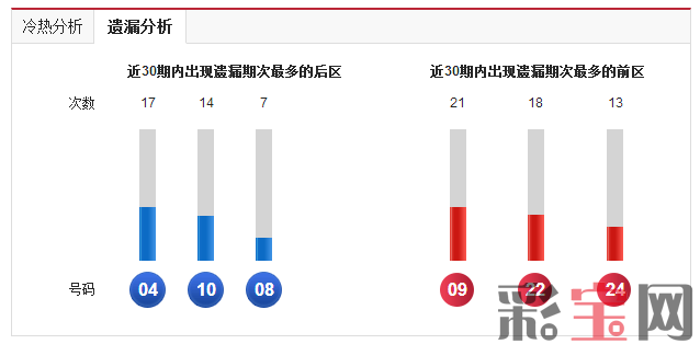 后区01已经遗漏5期,后区01同时近30期开出过4次,是近期热号之一。前区无热号,无冷号。