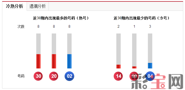 后区03已经遗漏4期,后区03同时近30期开出过8次,是近期热号之一。前区无热号,14为近期冷号。