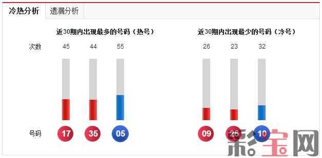 后区03已经遗漏5期,后区03同时近30期开出过5次,是近期热号之一。前区无热号,无冷号。