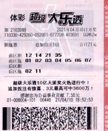4月10日,体彩大乐透第21039期开奖,这也是大乐透10亿大派奖首期开奖,浙江省迎来“开门红”!杭州购彩者夺得“超级锦鲤”称号,揽获1注追加一等奖,单票奖金2302万元。4月12日,“超级锦鲤”陈先生现身浙江省体育彩票管理中心领奖,这位“90后”小伙还带来了父亲,一起见证幸运时刻。