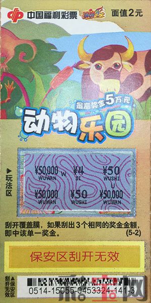 11月11日下午,彩民王先生(化名)拿着一张刮刮乐彩票来到抚顺福彩中心兑奖处兑奖。经福彩工作人员通过即开票终端机确认,王先生手中的刮刮乐即开型彩票“动物乐园”中得了最高奖,奖金为5万元。
