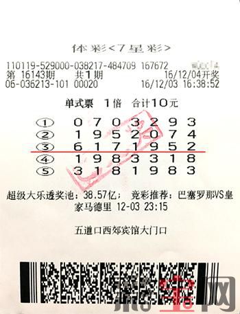 12月4日,体彩7星彩第16143期开奖。当期全国开出3注封顶一等奖,单注奖金500万元。开奖后,全国3注头奖中的1注落户北京市海淀区第36213的体彩销售网点,中奖者正是丘女士。为她赢得500万元大奖的是一张开销只有10元的单式单注票,票面上只选了5注号码。开奖之后的第三天,丘女士在家人的陪同下来领奖了。
