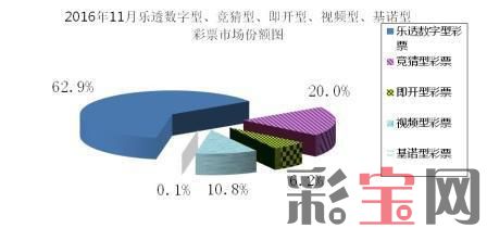 1月至11月累计,乐透数字型彩票销售2214.75亿元,同比增加76.56亿元,增长3.6%;竞猜型彩票销售700.88亿元,同比增加166.13亿元,增长31.1%;即开型彩票销售258.05亿元,同比减少16.36亿元,下降6%;视频型彩票销售404.31亿元,同比增加18.11亿元,增长4.7%;基诺型彩票销售2.49亿元,同比减少1.6亿元,下降39.2%。1-11月份乐透数字型、竞猜型、即开型、视频型、基诺型彩票销售量分别占彩票销售总量的61.8%、19.6%、7.2%、11.3%、0.1%。