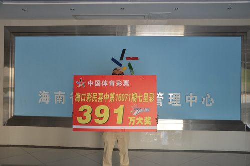 6月22日上午,第16071七星彩一等奖得主黄先生现身海南省体彩中心兑奖大厅,兑走了391万元大奖,并当场捐出5万元用于公益助学。