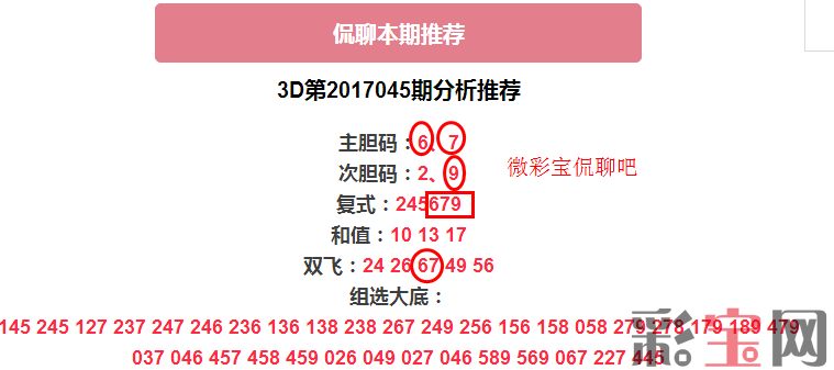 3D第2017047期分析推荐