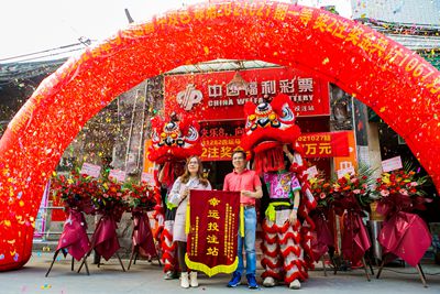 当天下午四时,站主何女士忙不停手,时而帮忙张贴中奖海报,时而整理门前祝贺花篮,仅仅一会儿工夫,站点内便营造出喜庆的氛围。在震天的锣鼓声中,群狮起舞,喜庆的礼炮齐鸣,佛山市顺德区福彩发行中心工作人员把幸运锦旗颁发给何女士。佛山顺德福彩马齐站自此多了一份“幸运投注站”的荣誉,路人纷纷驻足围观,彩民陆续进店购彩沾喜气。