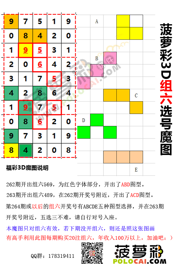 福彩3D第264期组六选号魔图(此方法有人年收入创100万)