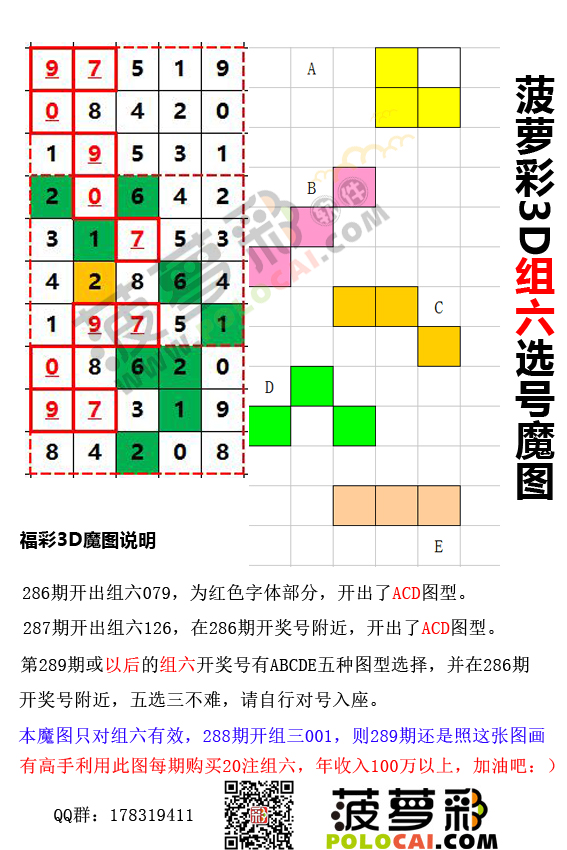 福彩3D第289期组六选号魔图(此方法有人年收入创100万)