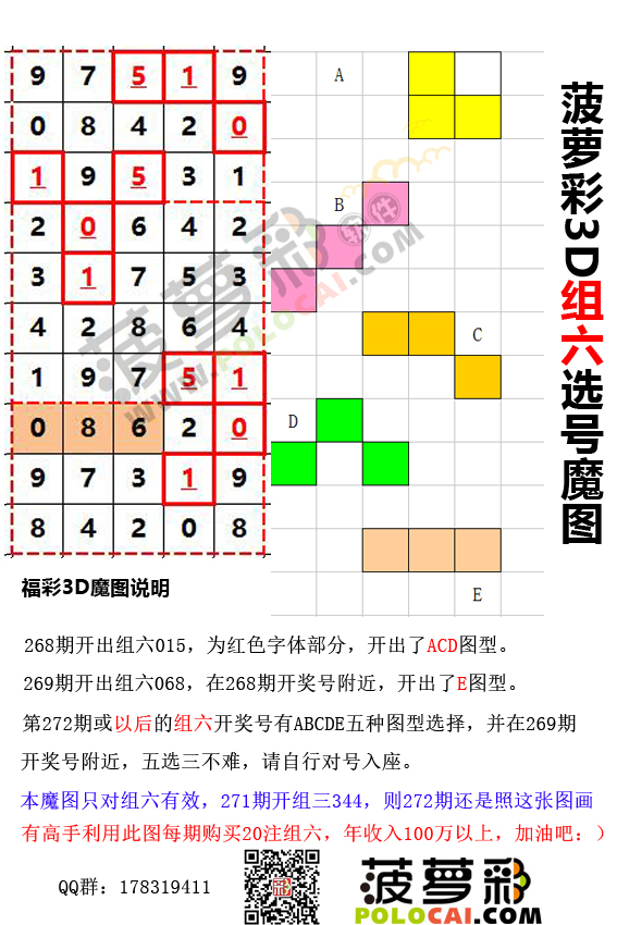 福彩3D第272期组六选号魔图(此方法有人年收入创100万)