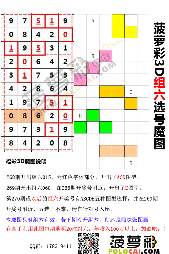 福彩3D第270期组六选号魔图(此方法有人年收入创100万)