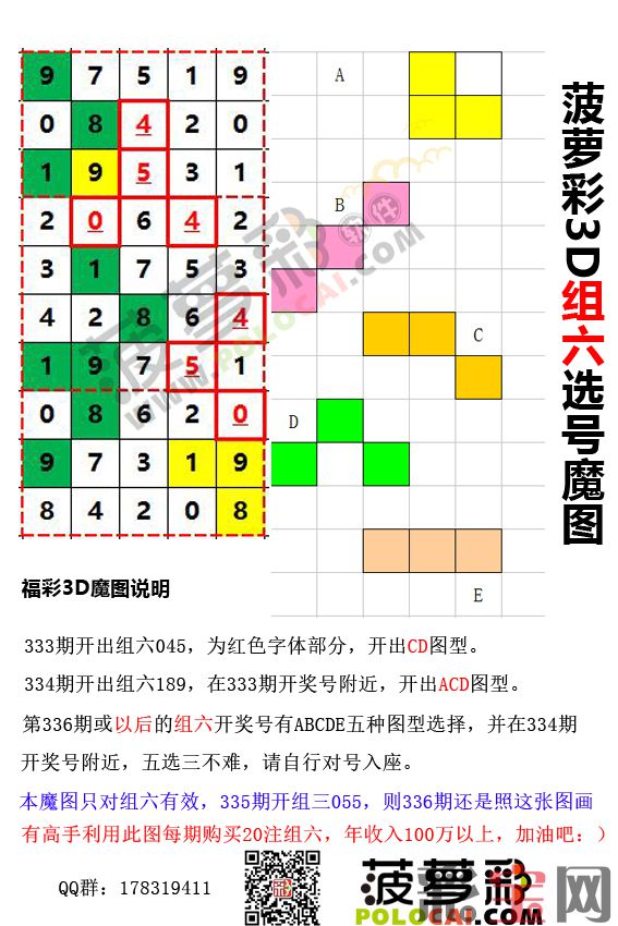 第336期或以后的组六开奖号有ABCDE五种图型选择,并在334期开奖号附近,五选三不难,请自行对号入座。