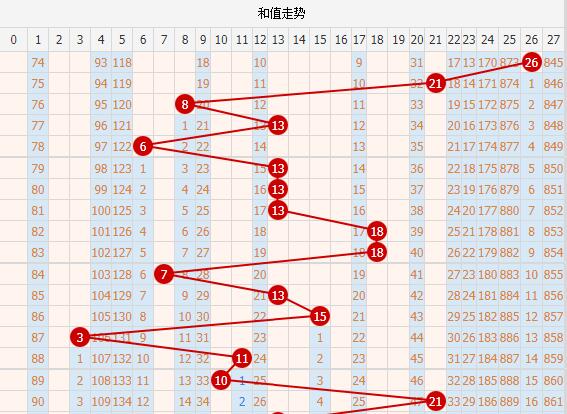 提供排列三开奖号码或指标值在每期的变化情况,以K线折线的形式表示。包括:定位号、和值、跨度、AC值、偏度值、散度值、奇号/大号/质号/0路/1路/2路号码个数等走势K线图。一目了然,便于判断。